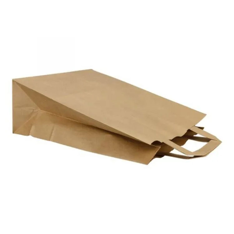 Крафт хартиена торба со рачки рачки со рамни хартии може да се користи во угостителската индустрија, во супермаркетот и како подароци. Тие се изработени од робусни и издржливи материјали, може да се користат повторно неколку пати, се компостибилни и биоразградливи.